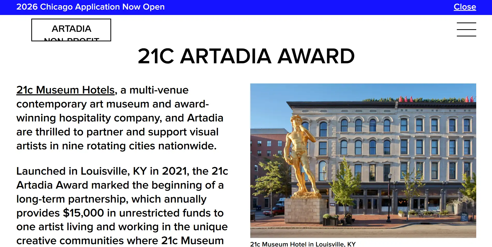 Artadia provides meaningful, accessible funding for visual artists in major American cities. Its combination of unrestricted awards that trust artists to direct resources wisely, a rigorous dual-level selection process that balances local knowledge with national standards, city-based programming that reaches diverse artistic communities across the country, and a growing professional network that extends the award's impact well beyond the financial support makes it one of the most valuable grant programs available to working visual artists in the United States.