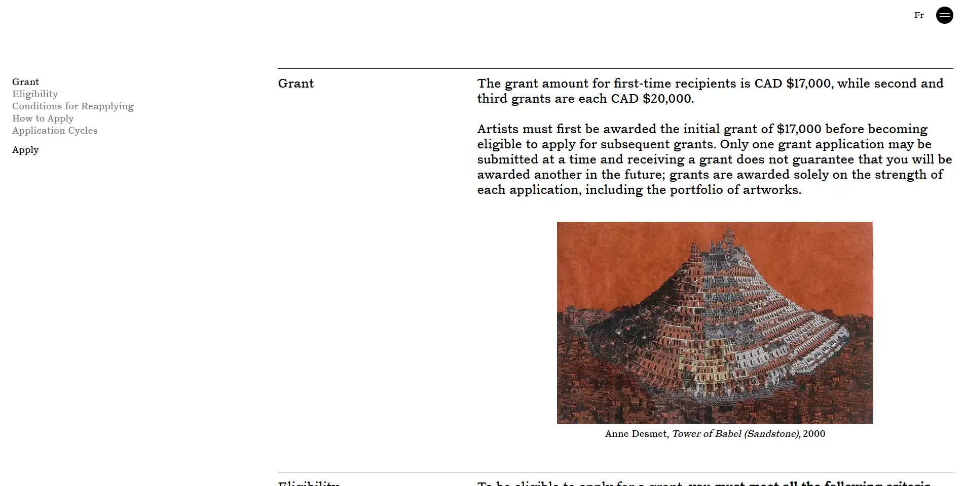 Established in 1955 in Montreal, Canada, the foundation provides grants of up to $15,000 CAD to emerging artists who demonstrate talent and commitment in representational art forms. Applications are accepted on a rolling basis with no fixed deadline, making it one of the most flexibly timed grant opportunities available. The program is open to artists worldwide—there is no geographic restriction, making it accessible to artists in countries where arts funding is scarce.