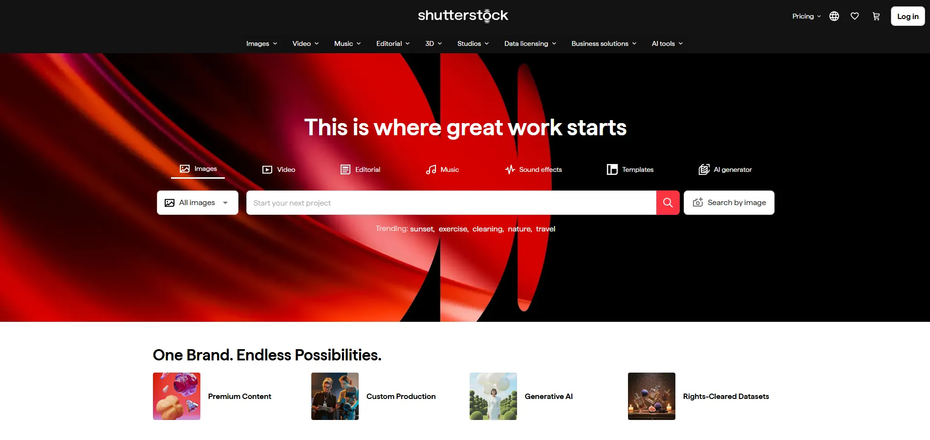 The giant of the stock world. With over 400 million assets and advanced AI tools, Shutterstock is the safe, reliable choice for enterprise and commercial projects.